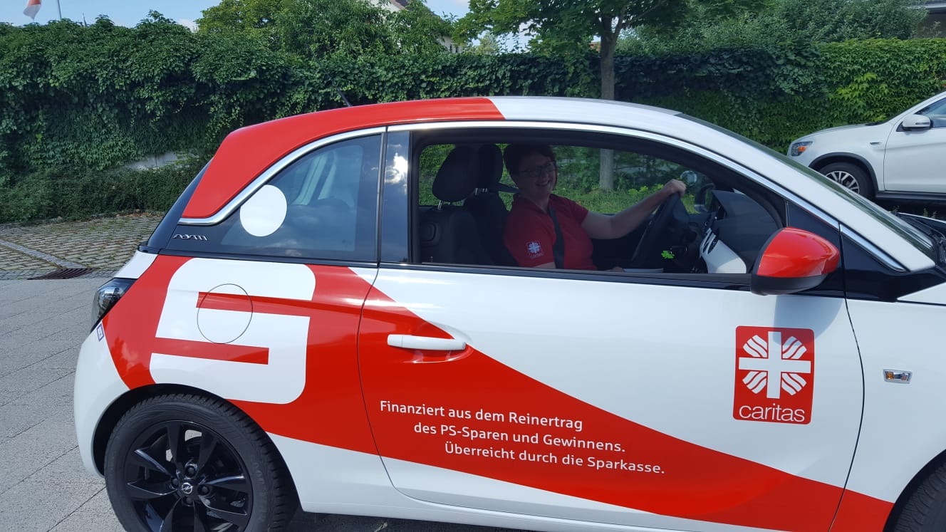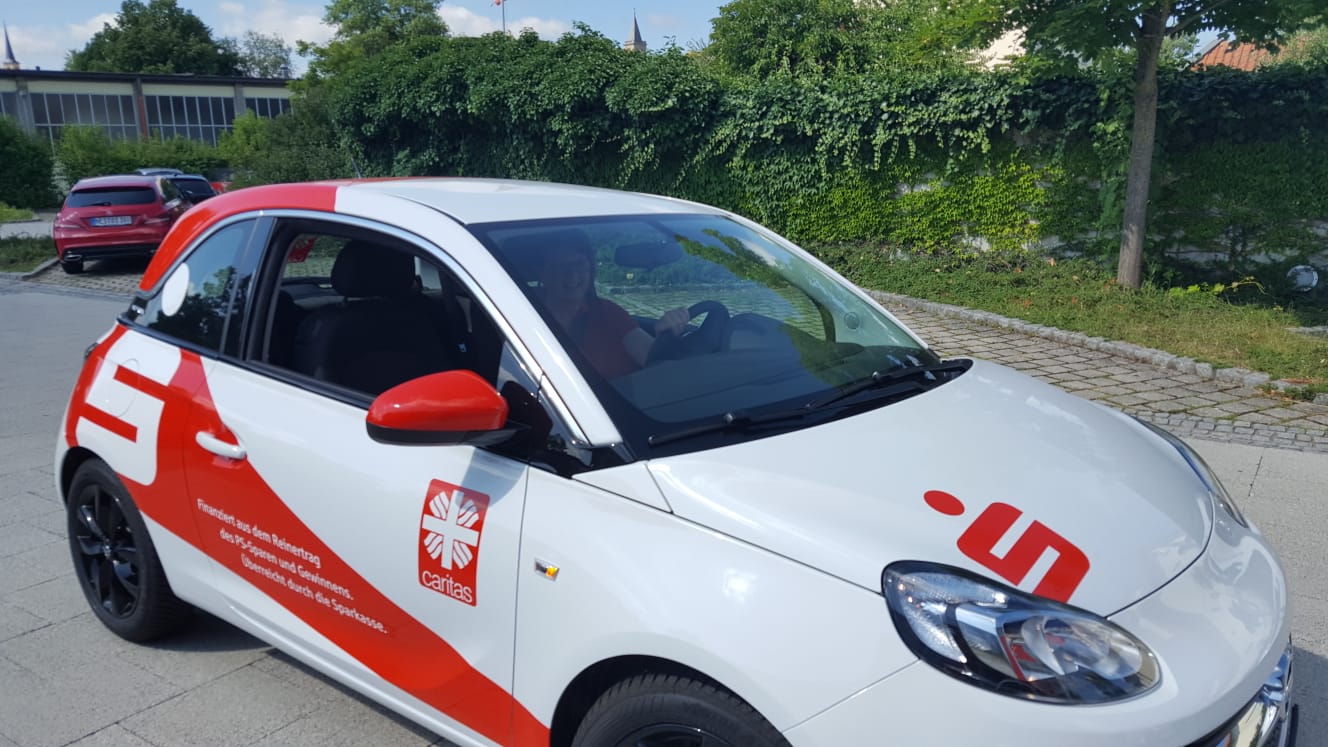 Der Neuwagen, der im auffälligen Sparkassendesign dekoriert und mit Caritas-Aufklebern versehen ist, wird für Fahrten der Sozialstationen im Landkreis eingesetzt werden. Caritas-Geschäftsführerin Angelika Ochs bedankte sich im Namen der Mitarbeiter der Sozialstationen beim Vorstandsvorsitzenden der Sparkasse, Georg Straub. Der Caritas-Opel Adam ist ab sofort unterwegs. Über die flotte Spende freuen sich bei der Übergabe gemeinsam: der Vorsitzende der Sozialstation Bad Neustadt, Alois Heinisch, der stellvertretende Sparkassen-Vorstand Klaus Grenzer, Gudrun Rathgeber von der Sozialstation Bad Königshofen, Uli Feder von der Pflegedienstleitung Mellrichstadt, Caritas-Kreisgeschäftsführerin Angelika Ochs, Bruno Kleinhenz von der Pflegedienstleitung Bad Neustadt und Sparkassenchef Georg Straub.