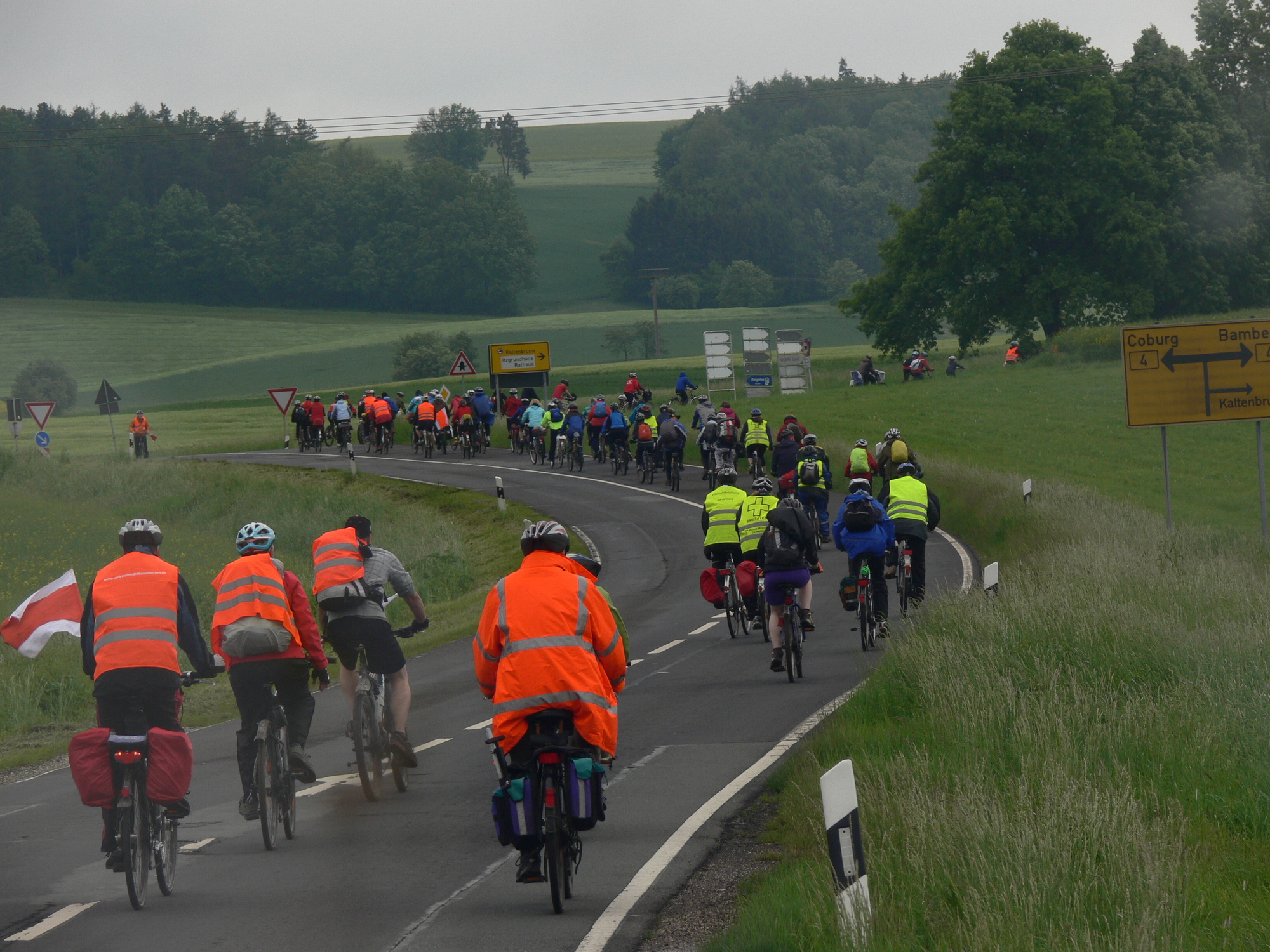 Petrus meinte es am vergangen Freitag gut mit den jugendlichen Fahrradwallfahren, die sich wie ein langes buntes Band, auf ihrem Weg von Herbstadt nach Vierzehnheiligen durch die Landschaft schlängelten. Der BDKJ Rhön-Grabfeld hatte aufgerufen sich per Rad auf den ca. 60 km langen Weg zu machen und dabei an verschiedenen Stationen Franz von Assisi und seinem einfachen Lebensstil auf die Spur zu kommen. Begleitet vom Sonnengesang „laudato si“, dem Mottolied der Wallfahrt, startete die Gruppe in Herbstadt und Alsleben. Die Station am Kreuz an der ehemaligen innerdeutschen Grenze nahe Gompertshausen wurde, wegen der regnerischen Prognose in diesem Jahr, nach Heldburg verlegt. Hier, in der evangelischen Stadtkirche bekamen die Teilnehmer ihr Wallfahrtssymbol, das TAU, mit auf den Weg. Eine Form des Kreuzes, zu der Franz von Assisi eine ganz besondere Beziehung hatte. Der weitere Weg führte über Sesslach nach Reundorf, wo es weitere Impulse zum Leben des heiligen Franziskus gab. Für das letzte Stück des Weges tauschten die Wallfahrer die Fahrräder gegen Wanderschuhe und es begann der letzte anstrengende Teil des Weges, der von der Musikkapelle Herbstadt musikalisch gestaltet wurde. Auf dem einstündigen Fußmarsch konnten die Teilnehmer über vorgelesene Tipps und Tricks aus dem Buch „Simplify your life“ von Werner Tiki Küstenmacher nachdenken. Das Buch beschäftigt sich auf unterhaltsame Art und Weise damit, wie man es sich in den verschiedenen Lebensbereichen einfach einfacher machen kann. An der Pforte, der hoch über dem Maintal strahlenden Basilika, wurde die jugendliche Gruppe aus Rhön-Grabfeld herzlich Willkommen geheißen. Vor dem Wallfahrtsamt am nächsten Morgen wurden die Gewinner des Wallfahrts-Quiz, an welchem die Teilnehmer während der Fahrt teilnehmen konnten gekürt. Der Erste Preis war ein Rundflug von der Flugschule Gehret aus Bad Neustadt. In seinem Wallfahrtsgottesdienst griff Pater Christoph das Thema der Wallfahrt erneut auf und ermunterte: „Vereinfache dein Leben! Vereinfache deine Liebe! Bringe die Weisheit der Bibel in dein Leben! – DU hast es in der Hand!“. Beflügelt wurde der Gottesdienst von der mitreißenden Musik der Hendunger Band „Sonndich“. Begeistert machte sich die junge Gruppe nach dem feierlichen Auszug auf den Heimweg. Möglich gemacht wurde die Wallfahrt von Wallfahrtsleiter Johannes Reichert und dem BDKJ-Team. (DE)